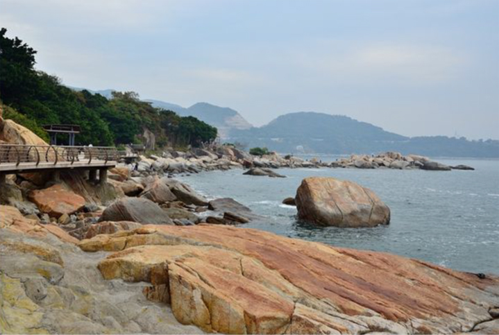 深圳盐田海滨栈道西起中英街,东至背仔角,自西向东由中英街段、沙头角段、港区段、渔港段、大梅沙段及小梅沙段组成。沿途设有登山道、步道、景观平台、大栈桥、石拱桥。一头连接着大梅沙的蓝天碧海自然风光,一头牵着中英街的“一街两制”百年人文,盐田滨海栈道与蛇口至红树林的深圳湾海滨栈道成呼应之势。全长19.5 公里。栈道依山傍水,充满滨海风情。