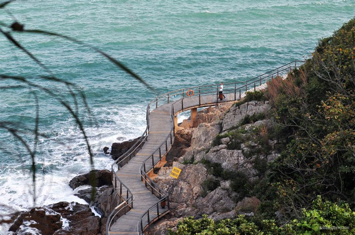 这条栈道让都市忙人在家门口凭海临风,畅享滨海生活、海港印象,感受渔舟晚唱,半山观港,就像在悬崖边上散步,惊涛拍岸与休闲悠然同在。