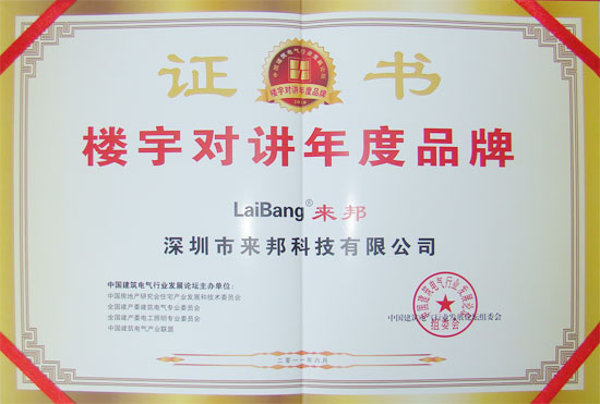 以下是伟德国际1949公司被评为“2011楼宇对讲年度品牌”荣誉奖牌、证书: