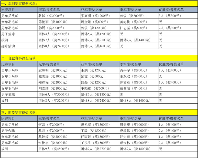 公司对胜出者颁发了奖金(附表):