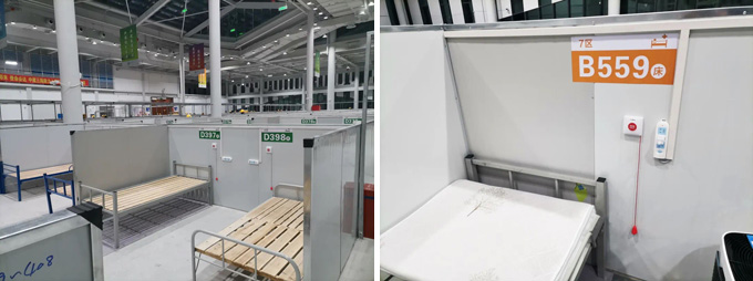 项目涉及14个展馆约42万平方米施工改造,总计可提供约5万张床位,成为上海目前规模最大的临时隔离收治点。
