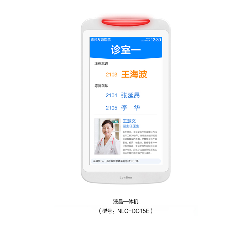 • 采用15.6英寸液晶显示屏,内置灯带双侧发光设计,壁挂式安装在诊室门口。