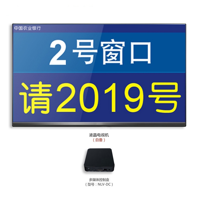 局域网传输,由多媒体控制盒(型号:NLV-DC)液晶电视机(自备)组成。建议选19英寸以上液晶电视机,一般壁挂在办理窗口上。