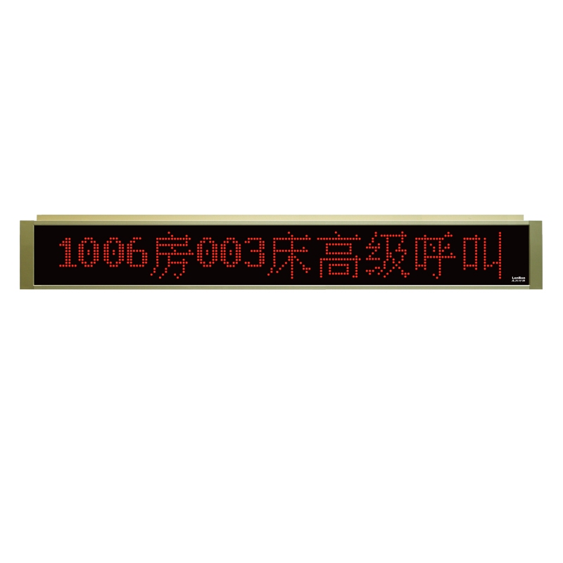 铝合金边框,双面单行十汉字滚动显示,吊装在病区走廊。
