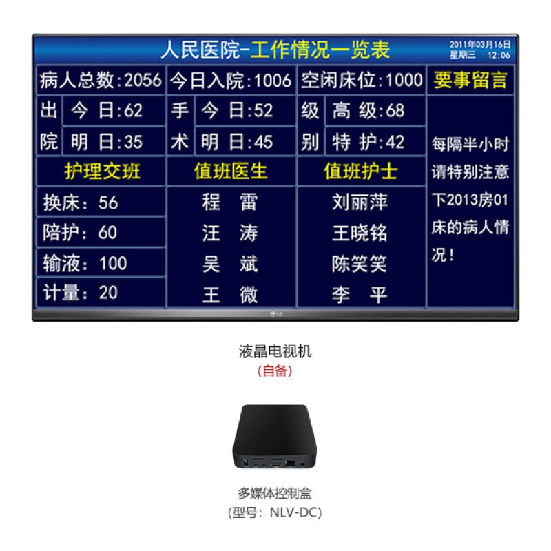 (自备)组成,可作为信息看板使用,安装在护士站。