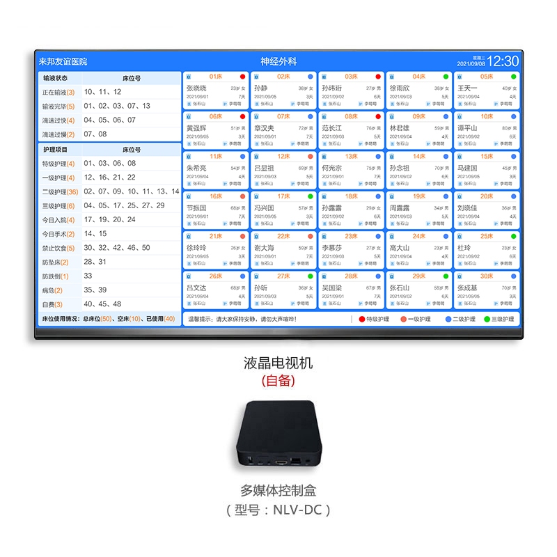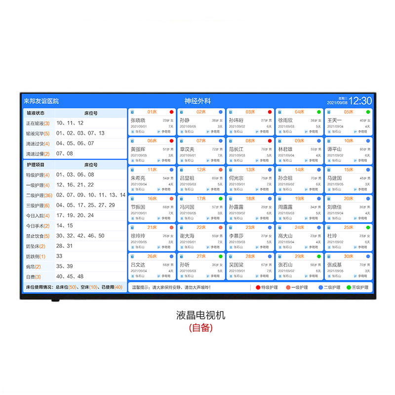 (自备)组成,壁挂式安装在护士站。